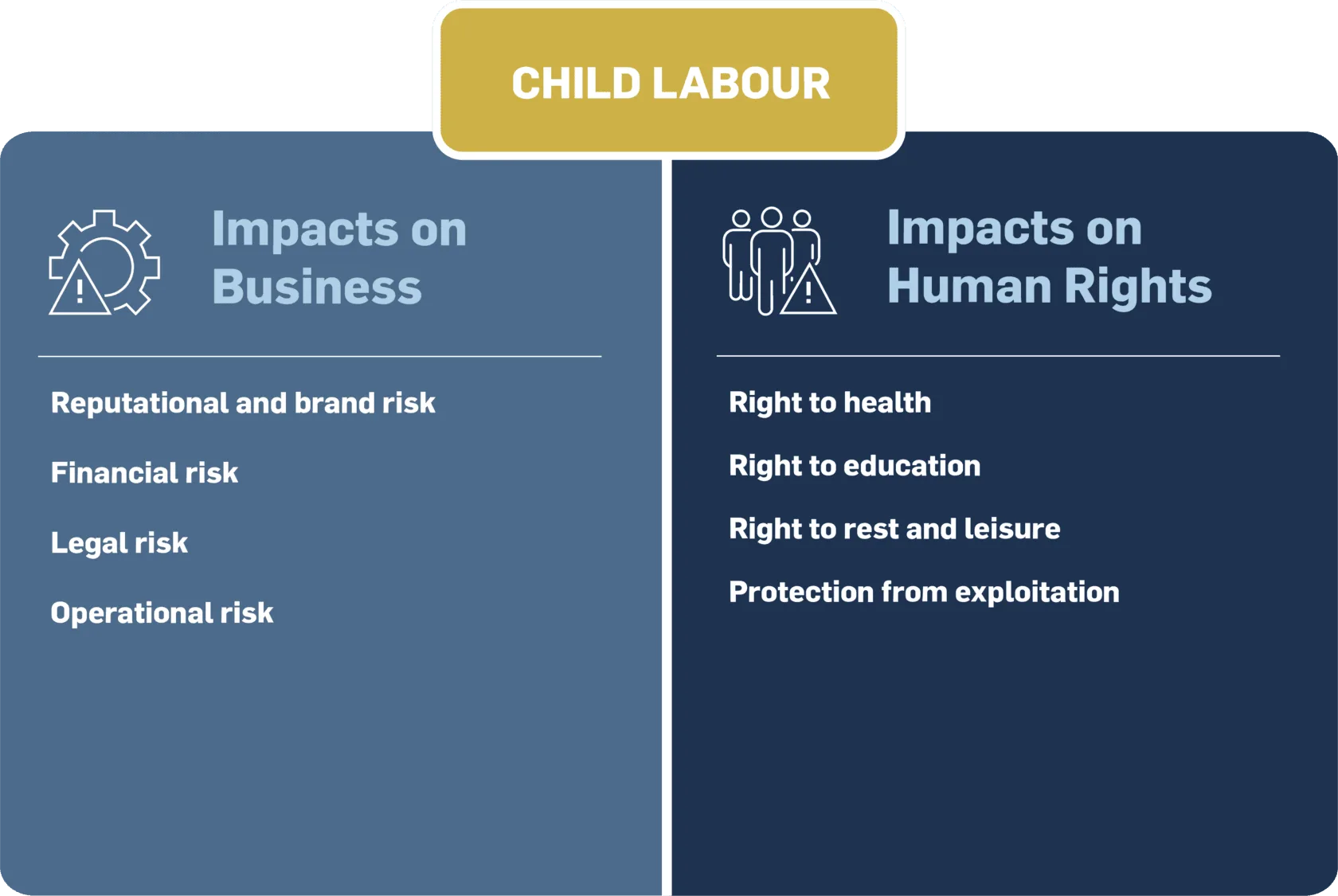 Businesses can be impacted by child labour risks in their operations and supply chains in multiple ways: