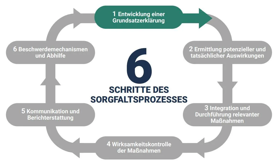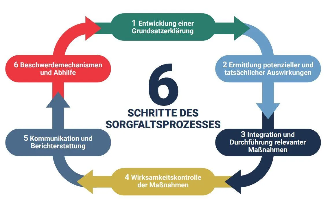 - KMU Kompass, Sorgfalts-Kompass: Dieses Online-Tool unterstützt Unternehmen bei der Umsetzung menschenrechtlicher Sorgfalt indem es schrittweise durch die fünf zentralen Phasen des Sorgfaltsprozesses führt.