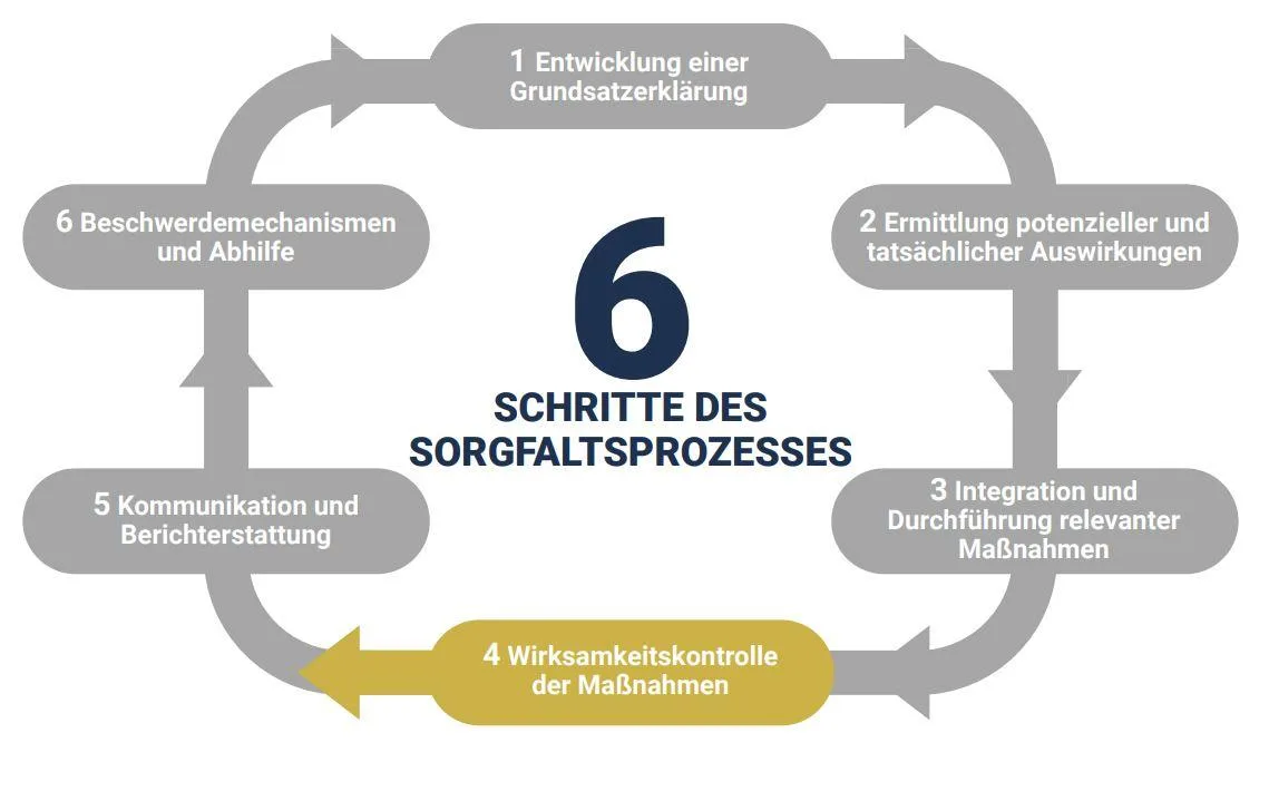 - KMU Kompass, Sorgfalts-Kompass: Dieses Tool bietet hilfreiche Empfehlungen zur Wirksamkeitsmessung von Maßnahmen.