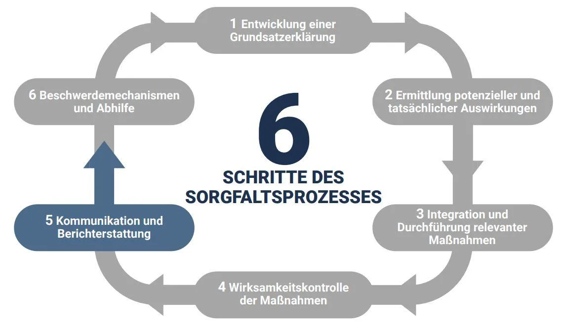 - KMU Kompass, Sorgfalts-Kompass: Dieses Tool bietet hilfreiche Empfehlungen zur Kommunikation von Fortschritten in Bezug auf menschenrechtliche Sorgfalt.