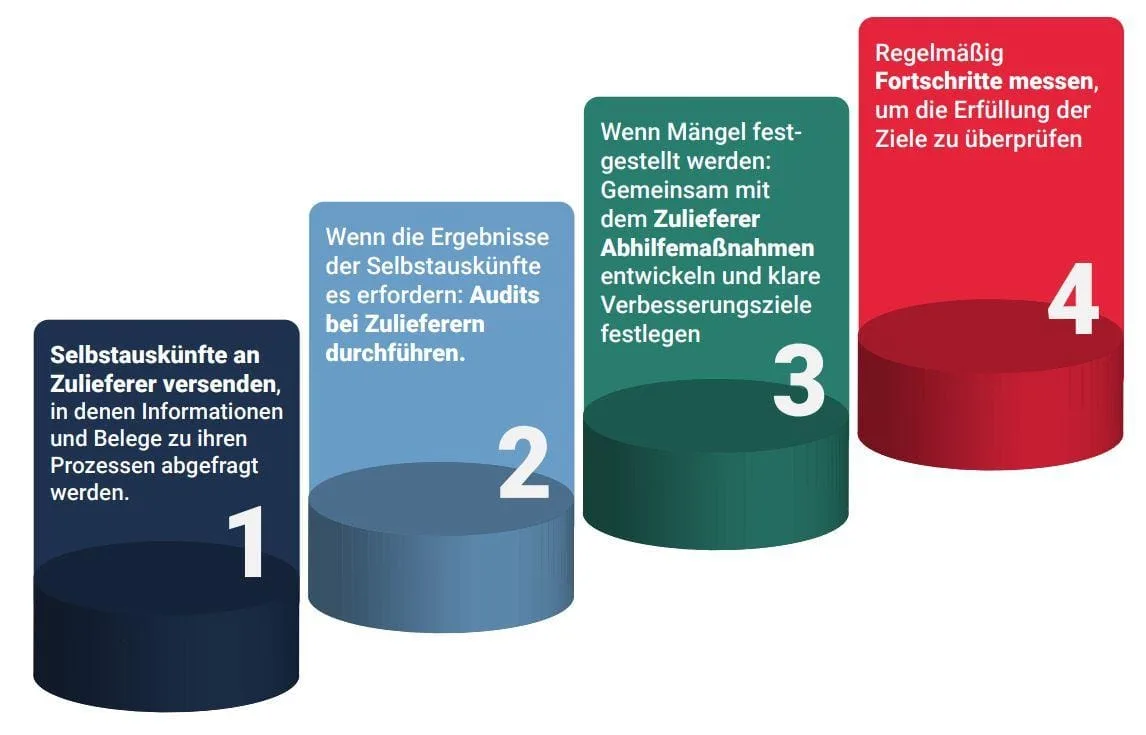 - KMU Kompass, Sorgfalts-Kompass: Dieses Tool bietet hilfreiche Empfehlungen zur Wirksamkeitsmessung von Maßnahmen.