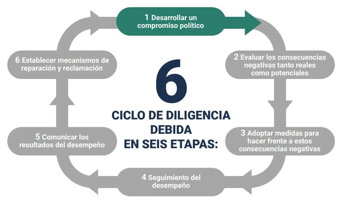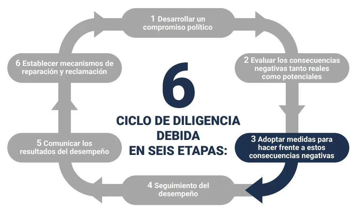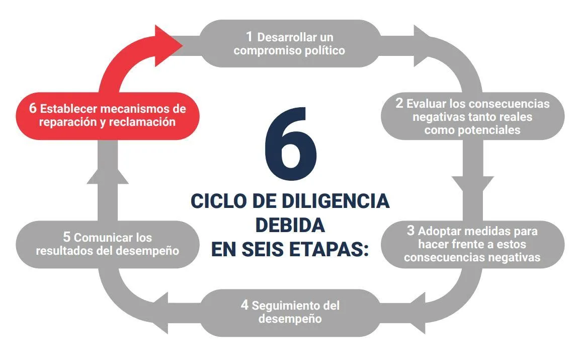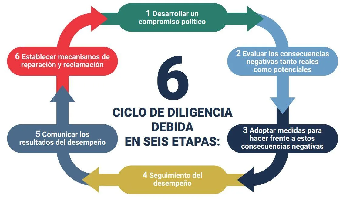 - SME Compass, Brújula de diligencia debida: esta herramienta en línea ofrece orientación sobre el proceso general en materia de diligencia debida en derechos humanos llevando a las empresas a través de cinco fases clave de diligencia debida.